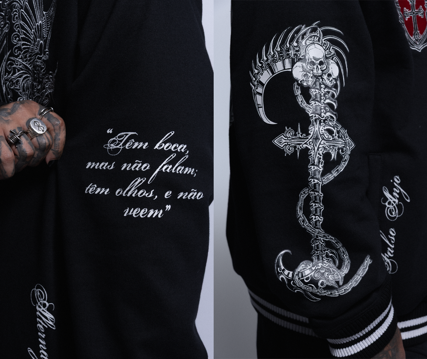 Peça com arte em serigrafia, bordados na parte frontal. Modelagem unissex.