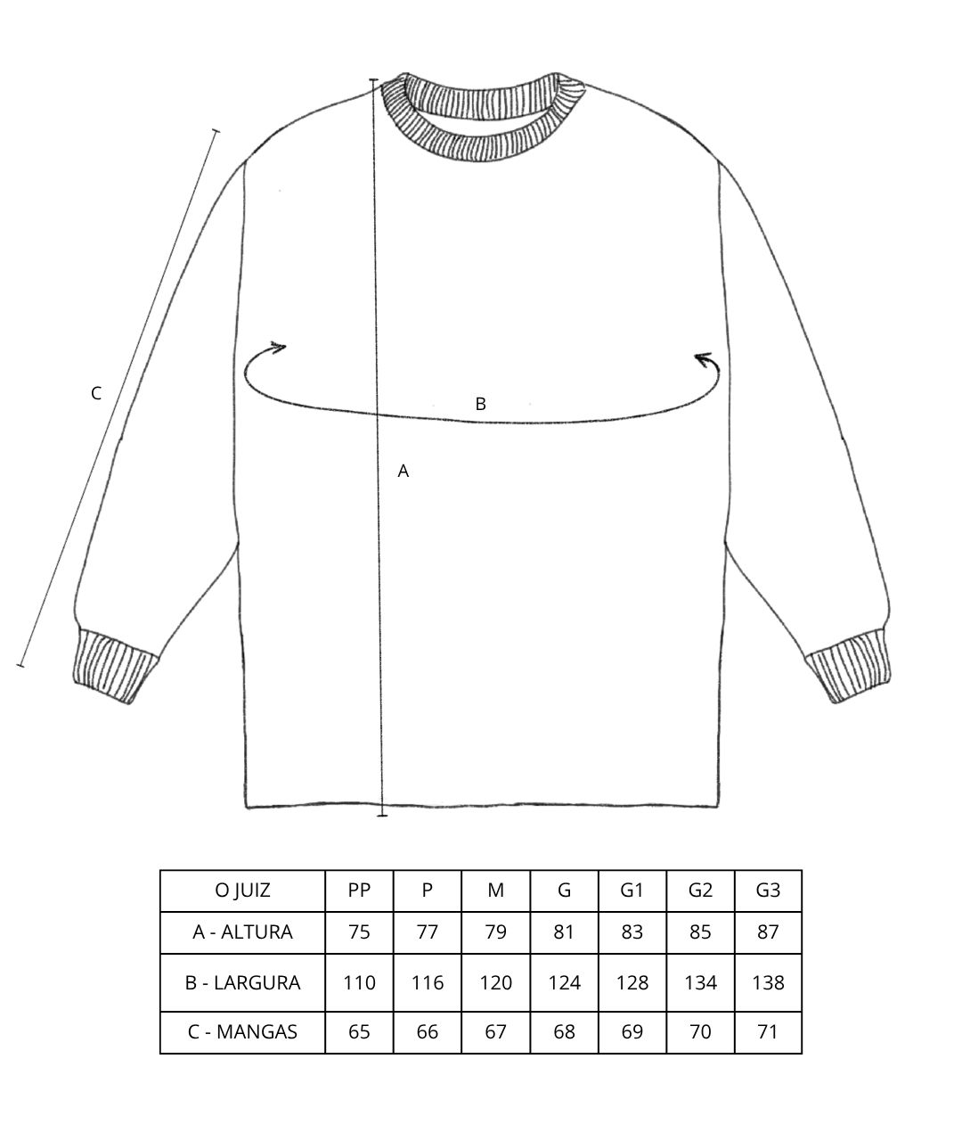 Modelagem oversized e unissex.