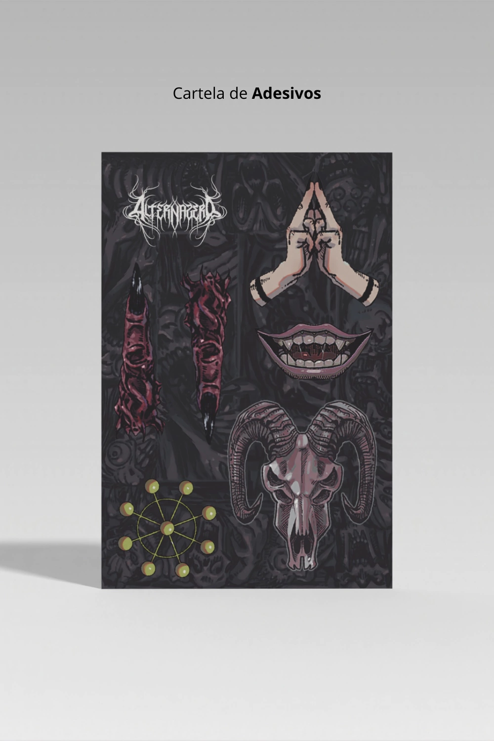 Essa peça é enviada na nossa Caixa Livro das Maldições e acompanha de brinde 1 cartela de adesivos.